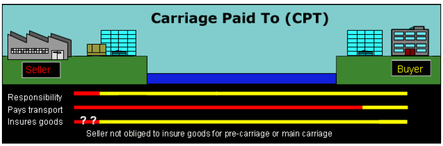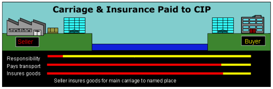 The seller pays for insurance as well as transport to the specified destination. Responsibility for the goods transfers to the buyer when the seller passes them to the first carrier.