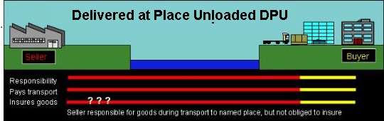 DPU is the only INCOTERM rule that requires the seller to unload goods at the place of destination,in order to complete delivery. The seller is responsible for arranging carriage and for delivering the goods, unloaded from the arriving means of transport, at the named place.