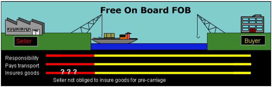 The seller must get the goods ready for export and load them onto the specified ship. The buyer and seller share the costs and risks when the goods are on board.